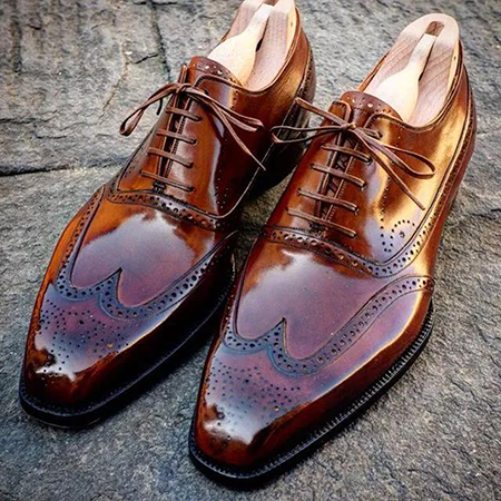 起源于17世紀英國牛津大學(xué)的牛津皮鞋,鞋面由兩片皮革拼接而成,皮革兩側(cè)有三個以上的孔眼用作綁定鞋帶的固定。鞋子兩側(cè)有雕花翼紋設(shè)計,現(xiàn)顯示出低調(diào)、古典的優(yōu)雅氣質(zhì)。